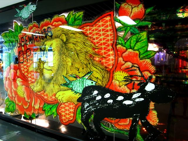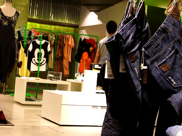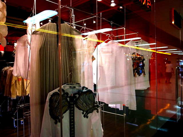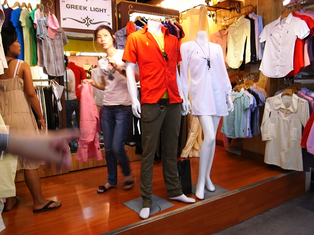 (↓↓左:這裡不是買吃的,是賣彩粧品唷!右:當地的品牌,襯衫超好看,我和老公都有買。)