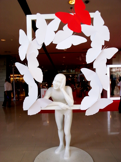 (↓↓左:Siam paragon外的噴水池。右:Central World Plaza入口的藝術品。)