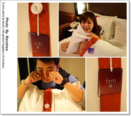 就是有兩組枕頭上分別寫著軟、硬