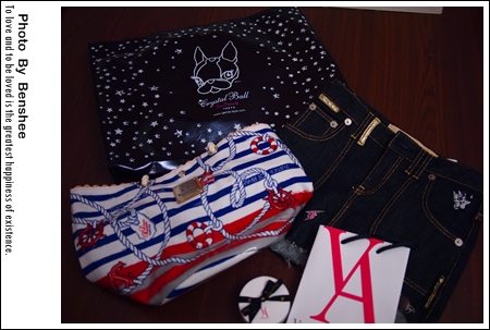 項鍊一組、海軍風狗頭包一個、牛仔裙一條。