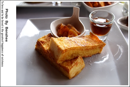 我們點的主餐是法國土司、薯條、鬆餅、迪克蛋