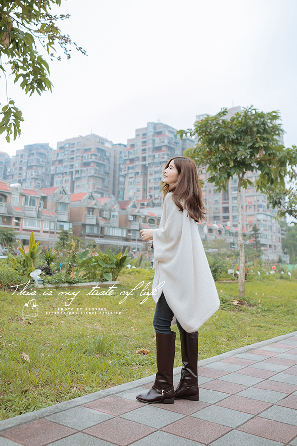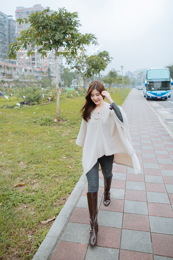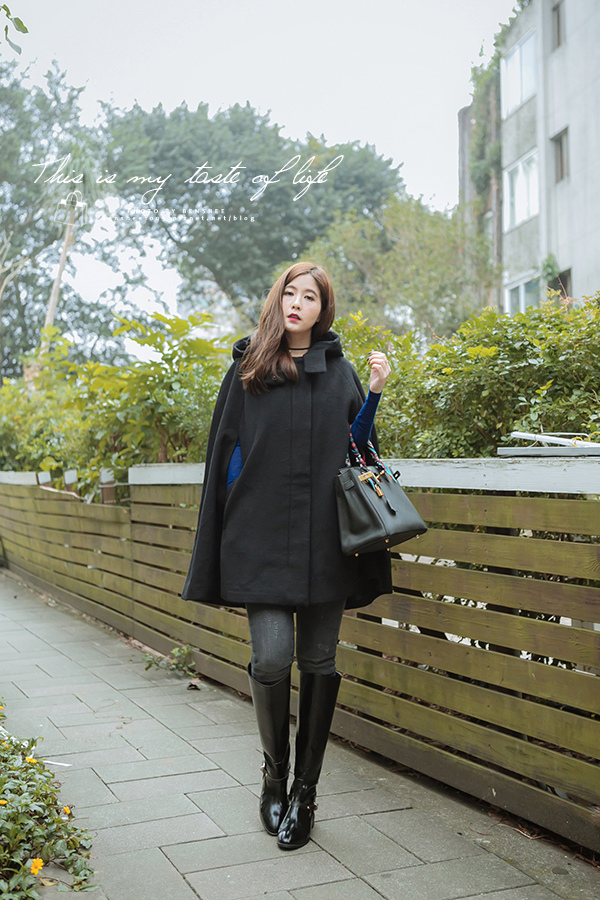 斗篷搭配牛仔褲與長靴