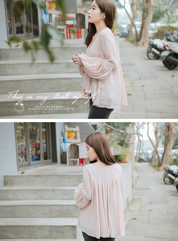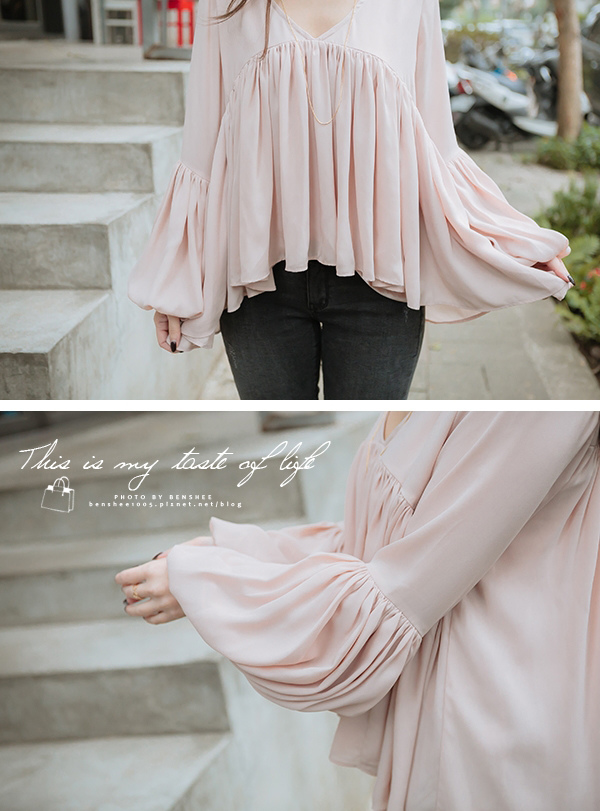 Made by FancyFancy - 粉粉雪紡蛋糕V領上衣