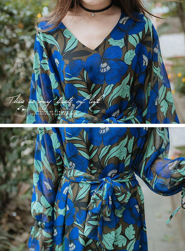 內搭的洋裝→ 韓國 BOHO圖騰印花飄飄長洋裝