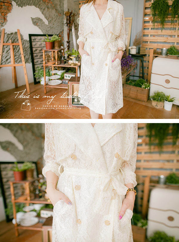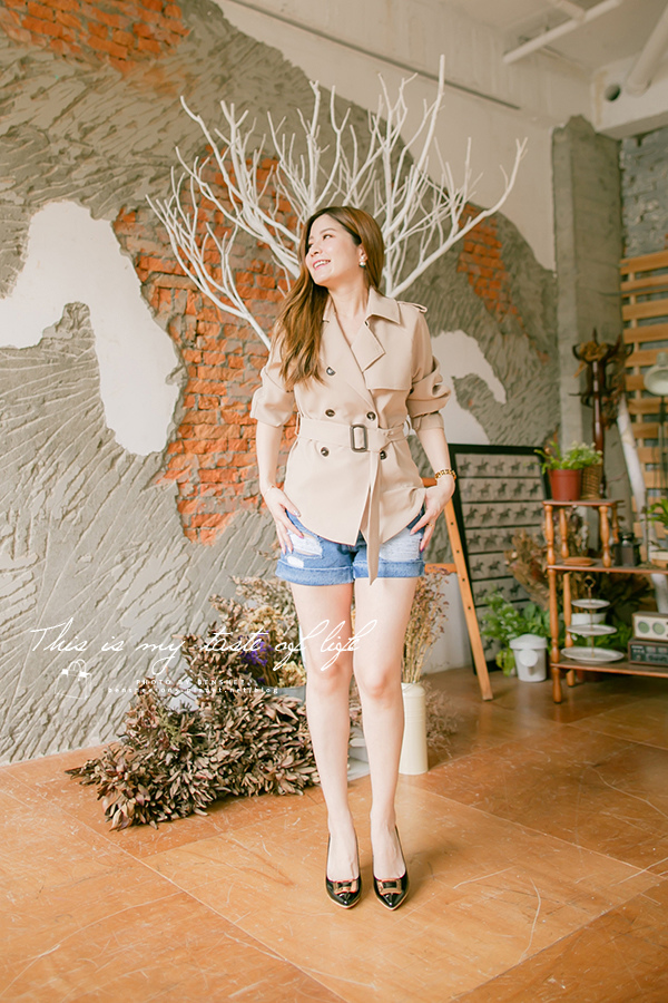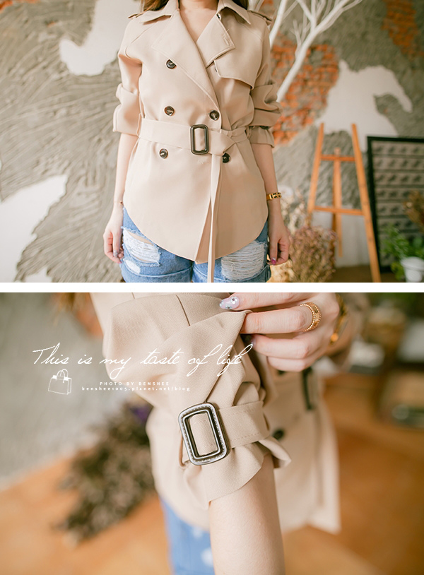 腰圍有綁帶可以調整腰身,然後記得穿風衣袖子一定要反摺才有型喔XD